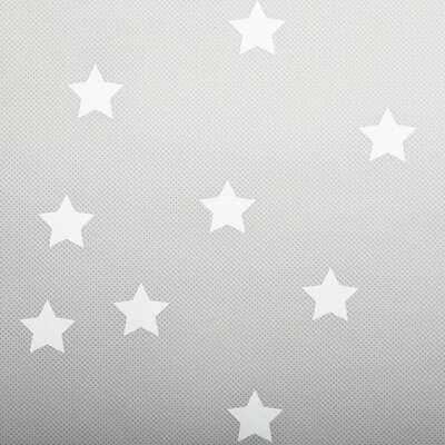 Kvadratinė pilkos spalvos medžiaginė daiktadėžė su baltomis žvaigždutėmis.