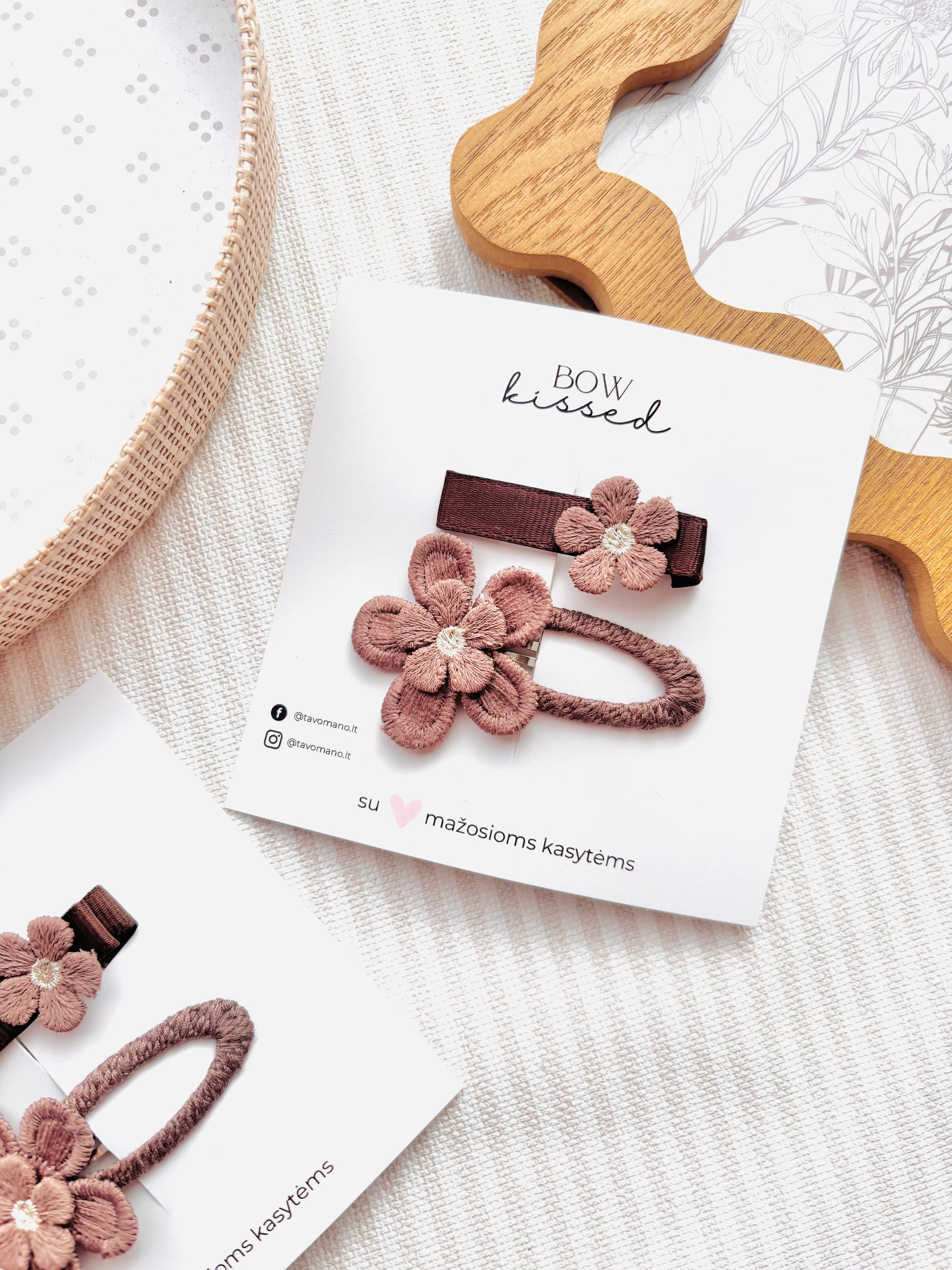 Šokoladinės rudos atspalvių segtukų komplektas.