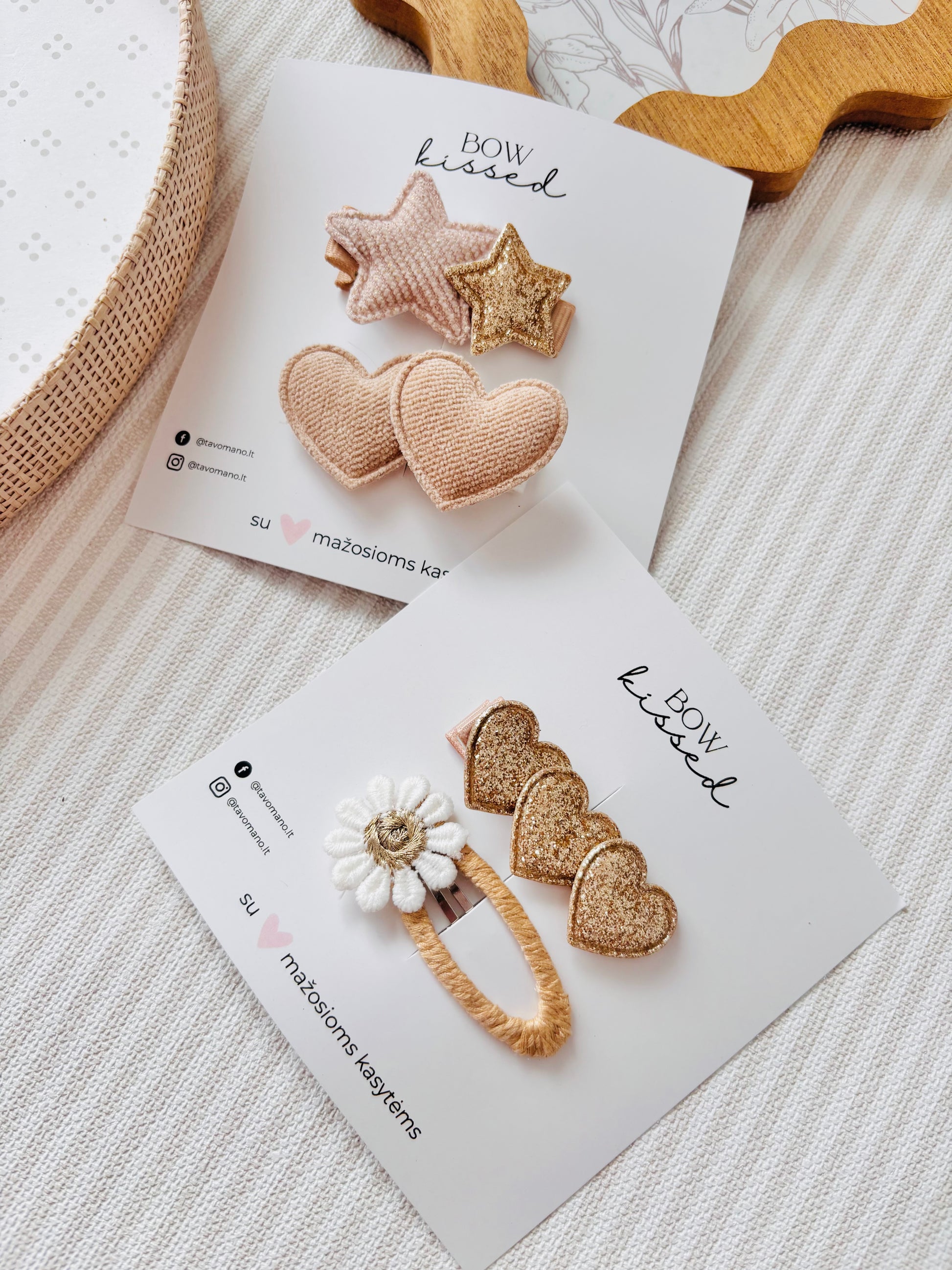 Komplektą sudaro 2 vnt rusvų pastelinių spalvų segtukai.